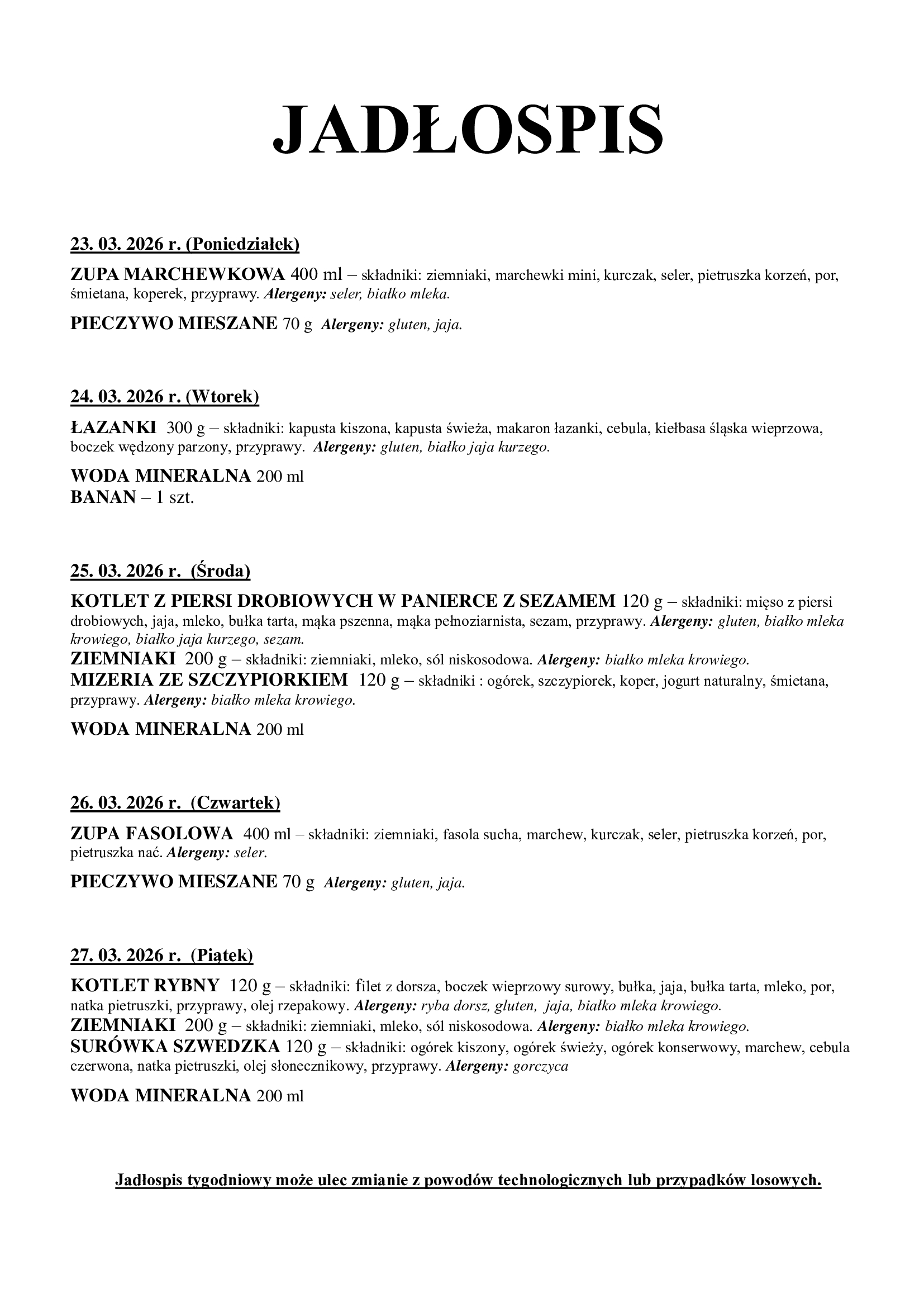Jadłospis szkół 23-27.03.2026 r.