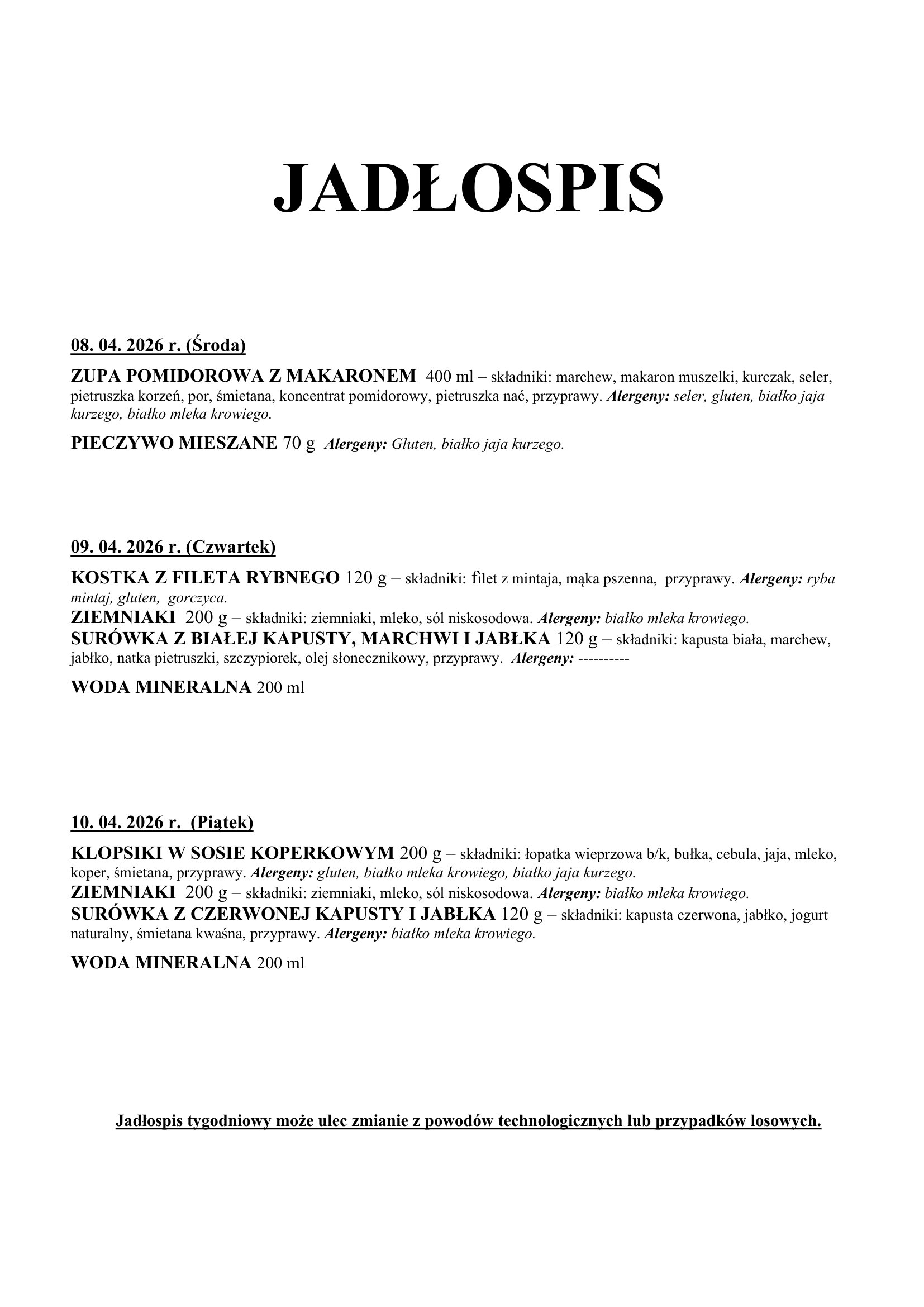 Jadłospis szkół 8-10.04.2026 r.